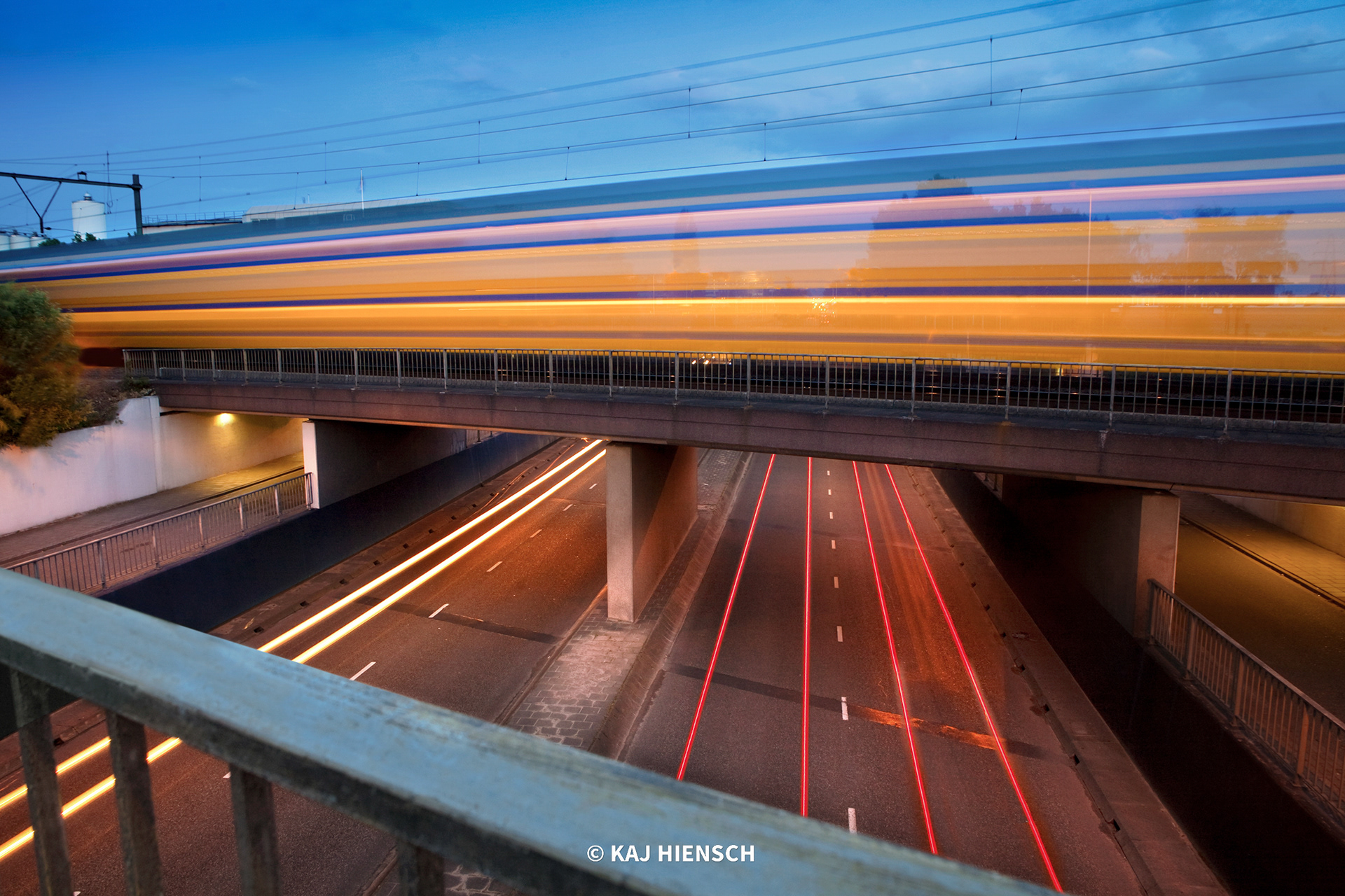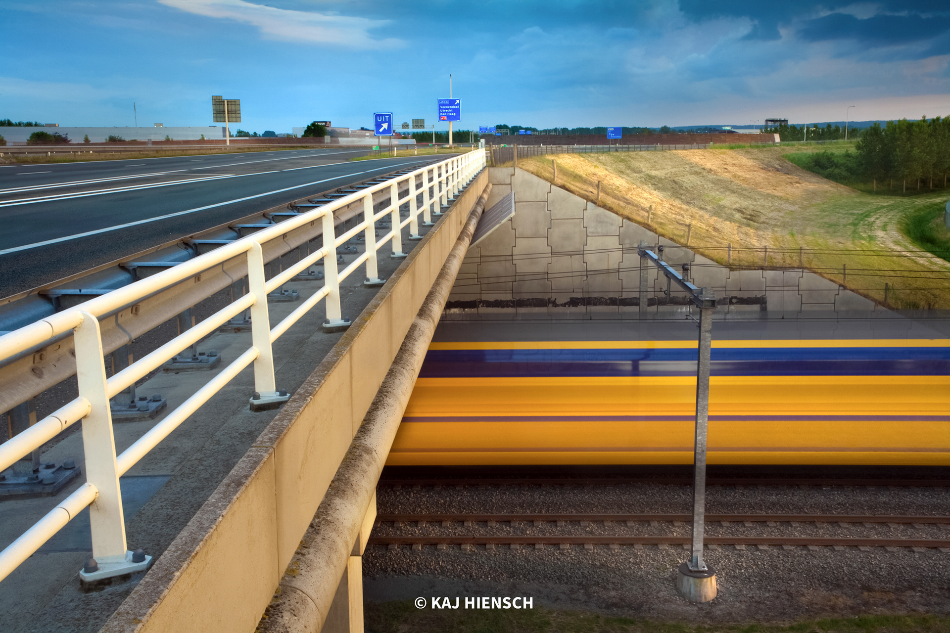 Fotografie van trein, metro, auto, motor, vrachtauto en vrachtschip in Nederland. Gemaakt door Kaj Hiensch